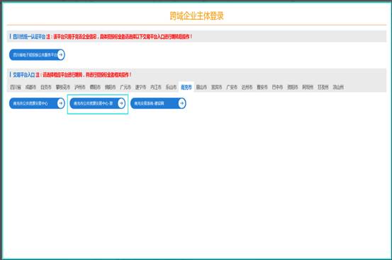 登錄完成后進(jìn)入首頁,選擇(南充市公共資源交易中心-新)進(jìn)入系統(tǒng),如下圖: