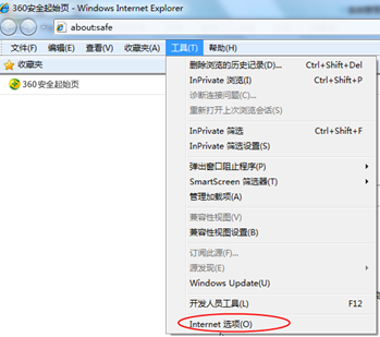 1、打開瀏覽器,在“工具”菜單→“Internet選項(xiàng)”