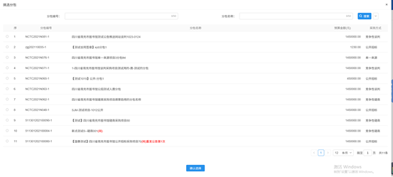 2、點(diǎn)擊【新增合同公告】進(jìn)入挑選標(biāo)段頁(yè)面,選擇對(duì)應(yīng)標(biāo)段,點(diǎn)擊【確認(rèn)選擇】,如下圖: