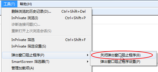 上述操作完成后,如果系統(tǒng)中某些功能仍不能使用,請(qǐng)將攔截工具關(guān)閉再試用。比如在windows工具欄中關(guān)閉彈出窗口阻止程序的操作: