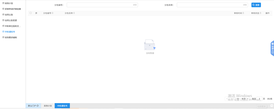1、 菜單中,點(diǎn)擊【采購(gòu)業(yè)務(wù)】—【中標(biāo)通知書】進(jìn)入該頁(yè)面,如下圖: